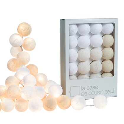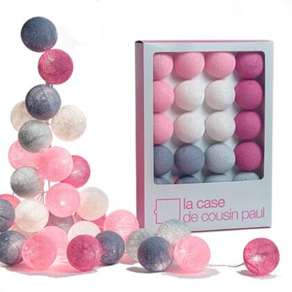 Французская компания La case de cousin Paul производит светящиеся объекты из тонких разноцветных нитей. Идея, найденная в Юго-Восточной Азии, обрела европейское качество, не потеряв свою уникальность и тепло ручной работы. Используйте гирлянды La case de cousin Paul для декорирования жилых помещений или как сезонное украшение, например, на Новый год. Каждый из двадцати шаров этой гирлянды сделан вручную из тонкой полиэстеровой нити.